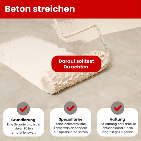 - Grundierung auftragen: Verwende eine passende Grundierung, um die Haftung der Betonfarbe zu verbessern und das Eindringen von Feuchtigkeit zu verhindern.