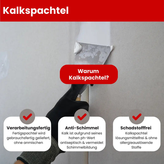 - Langlebig und robust: Kalk-Spachtelmasse ist besonders stabil und langlebig, was sie zur idealen Lösung für strapazierte Wände macht.