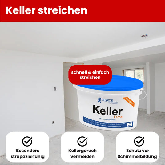 - Kellerfarbe wählen: Entscheide dich für eine atmungsaktive und feuchtigkeitsregulierende Farbe wie Silikat- oder Kalkfarbe. Diese verhindern Schimmelbildung und sorgen für ein gesundes Raumklima.