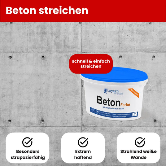 Beton ist sehr saugfähig und muss geschützt werden. Beton Wandfarbe ist widerstandsfähig und geruchsneutral und kann die Raumfeuchtigkeit regulieren.